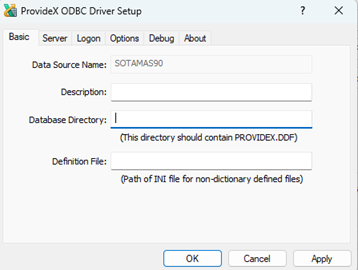 In the ProvideX ODBC Driver Setup window, enter the database directory where prompted.
